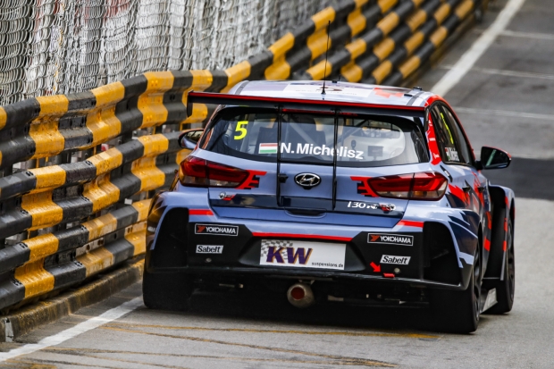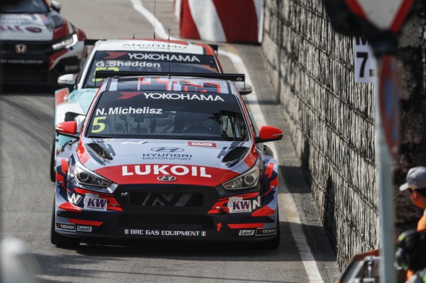 Michelisz Norbert az utolsó pillanatokig vezetett a WTCR első időmérőjén Makaóban, ám a legvégén Yvan Muller megelőzte őt, így a Hyundai magyarja a második helyen Link&Co-szendvicsbe került.